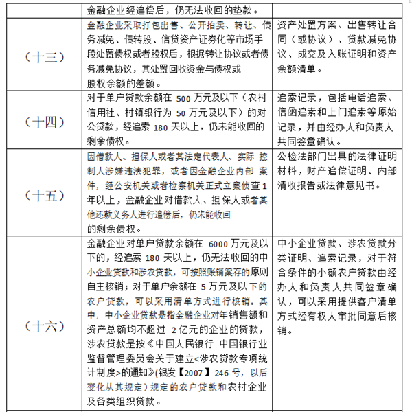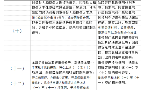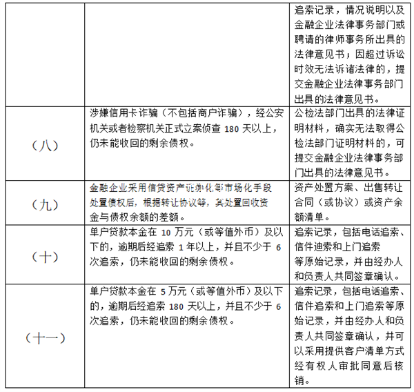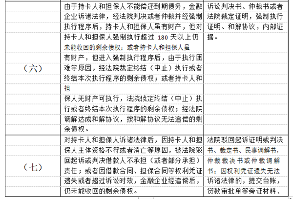 2.银行卡透支款项呆账认定标准及核销所需相关材料