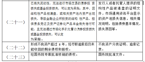 一般债权或股权呆账认定标准及核销所需相关材料